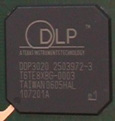 Auf der Unterseite der Platine finden wir schließlich den DMD-Steuerchip, hier gibt es eine gute Neuigkeit: Im Z3000 arbeitet der neue DDP3020, der erwartungsgemäß Vorteile in der Bilddarstellung bietet.