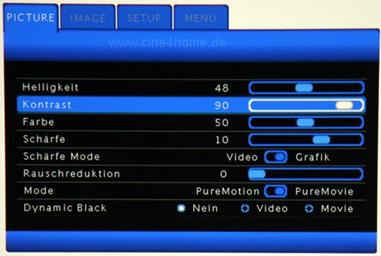 Auch die Menüoptionen deuten auf eine möglichst präzise Bilddarstellung hin, wie die technisch korrekten Angaben in den Bildmenüs deutlich machen. Das System ist vorbildlich und erreicht Referenzcharakter, sofern denn die Werte auch in der Praxis eingehalten werden. Lediglich die Fernbedienung gibt Anlass zur Kritik, weil sie in ihrem Tastenlayout nicht mehr modernen Bedienstrukturen gerecht wird.