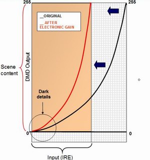 Parallel wird das Gamma so angepasst, dass im unteren IRE Bereich eine Spreizung der Helligkeitsstufen und so eine wesentlich bessere Ausnutzung des nativen Kontrast und der Durchzeichnung ermöglicht wird. Wir haben das System der adaptiven Blendensysteme schon in diversen KnowHow-Specials genau erläutert.