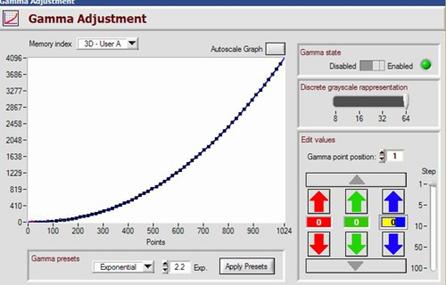 Für eine akkurate Helligkeitskomposition im Bild muss das Gamma gleichmäßig und gemäß der Videonorm konfiguriert sein. Wie bereits im zweiten Kapitel erläutert, kann man den erforderlichen 2,2 Anstieg direkt im Bildmenü auswählen.