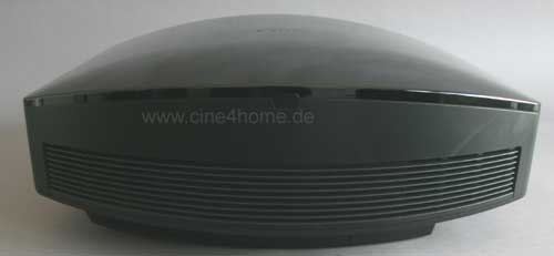 Mit Abmessungen von 470 x 179,2 x 482,4 mm und einem Gewicht von gut 12kg gehört der Beamer keineswegs zur Kompaktklasse, doch durch sein hochwertiges Äußeres stellt er durchaus einen imposanten Blickfang dar, der das Wohnzimmerambiente nicht stören muss. Ein weißes Finish wäre aber in jedem Falle unauffälliger unter der Decke.