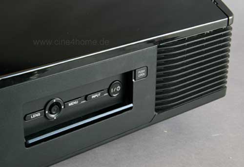 Alternativ kann der Projektor auf der rechten Seite durch das integrierte Bedien-Panel auch ohne Fernbedienung direkt gesteuert werden.