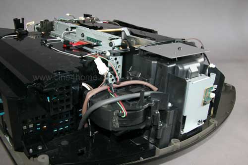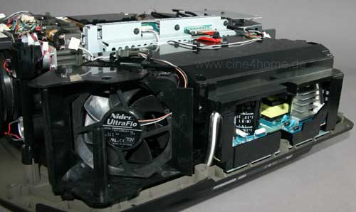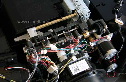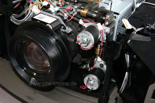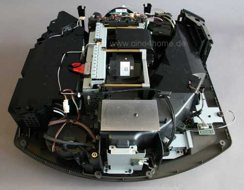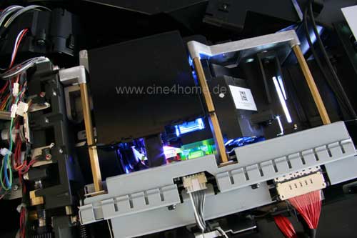 Dies sind rund 1000 Stunden mehr, als viele andere Fabrikate und sorgt bei einem moderaten Ersatzteilpreis von ca. €380.- für einen ökonomischen Heimkinogenuss. Der Lichtweg im Zentrum des Gerätes ist LCOS-typisch komplex und kann nur stellenweise von der Seite eingesehen werden.