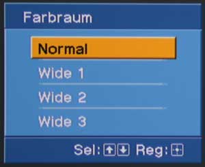 Wem Videonormen und akkurate Farbreproduktionen von DVDs und Blu-rays nicht so wichtig sind, weil er es gerne bunter mag, der hat zudem die Auswahl zwischen drei verschiedenen „Wide“-Presets für erweiterte Farbräume: