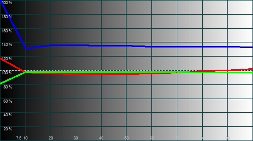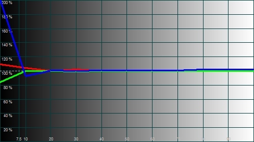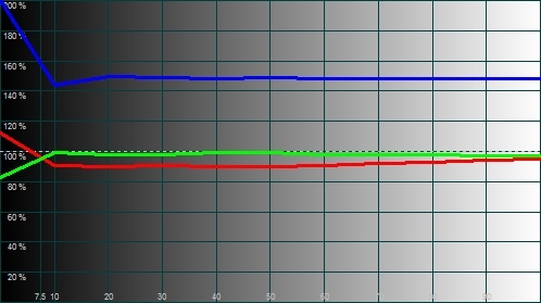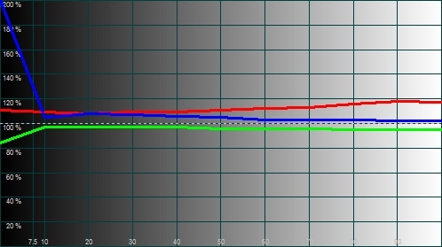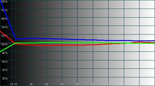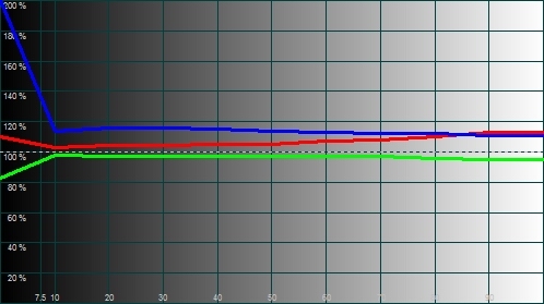 Wie im Messdiagramm zu erkennen, kommt der Projektor so bereits ab Werk der Videonorm verblüffend nahe, ohne dass man ihn kalibrieren müsste. Der kleine Blauüberschuss in dunklen Bereichen ist nahezu unsichtbar, Perfektionisten können aber selbstverständlich per Messinstrumente und Kalibrierung nachbessern: