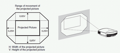 Mit dem Lensshift kann man das Bild um 65% nach oben / unten verschieben, bzw. 25% nach links oder rechts. Somit ist auch eine Aufstellung außerhalb der optischen Achse möglich.