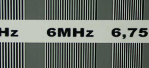 Die Signalelektronik des Sony gibt sich hier keine Blöße: Dank der hohen nativen Auflösung des Projektors gelingt es ihr, das PAL-Signal frei von Linearitätsschwankungen umzurechnen.. Selbst in dem schwierigen Auflösungsbereich um 6MHz (Bild oben) zeigen sich so gut wie keine Verfremdungen oder Interferenzen, dem PAL-Bild ist nicht anzusehen, dass es "umgerechnet" wurde.