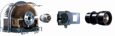 How Link hier) Wie bereits unter 1. erläutert, kann der Sony Projektor aufgrund seiner enormen Abmessungen nur stationär in einem Heimkino betrieben werden. Um aber eine Kompatibilität zu allen möglichen Raumverhältnissen zu gewährleisten, bietet Sony den Projektor in seiner Grundausführung ohne Optik an. Dazu kann der Anwender aus drei Optik-Varianten die für seine Aufstellung optimale wählen und per Bajonettverschluss in den Projektor einklinken.