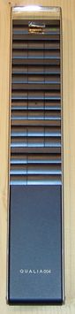 Rund herum umgibt den Projektor ein Schutzrahmen aus Aluminium. Er versteckt auch das ausgeklügelte Belüftungs-System, das vorne und an den Seiten die Kaltluft ansaugt, in einem Y-Kanal zusammenführt, und hinter der Projektionslampe aus dem Gerät bläst. Ein besonderes Gimmick ist das komplett animierte, blaue Dot-Matrix Display, das den Anwender auch ohne Leinwand immer auf dem Laufenden hält. Insgesamt ist der Projektor derart hochwertig verarbeitet, dass er kompromisslos neue Maßstäbe setzt. Kein Wunder, wird er doch fast ausschließlich per Handarbeit montiert. Damit wird das High-End Niveau des Qualia seiner hohen Preisklasse (rund € 30,000) gerecht.