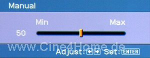 Zusätzlich stehen dem Anwender Speicherbänke ("User") zur Verfügung, in denen er seine eigenen "Optimalwerte" jederzeit abrufen kann. Unter "Gamma Correction" kann der Anwender zwischen vier verschiedenen Gammaeinstellungen wählen, ob wie bei dem VW50/100 es zusätzlich möglich sein wird, eigene Gammaprogrammierungen per PC durchzuführen, ist uns bislang noch nicht bekannt. Sehr wichtig für die Farbwiedergabe ist die Funktion "Color Temp": Zwischen drei Werksabstimmungen (Low, Mid, High) kann man hier die gewünschte Farbtemperatur aussuchen oder selbst optimieren.