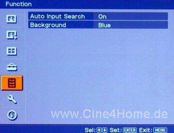 "Auto Input Search" bewirkt, dass der Projektor nur auf Eingänge umschaltet, an denen auch ein Signal anliegt. Dies ist eine sinnvolle Funktion, doch wäre sie bei einer besseren Fernbedienung mit direkten Quell-Tasten überflüssig.