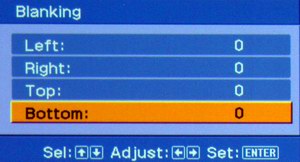 Neben Trapezausgleich und Projektionsmodus hat es auch die Blanking Funktion in den Topaz geschafft: Der Nutzer kann hier alle vier Bildränder unabhängig voneinander maskieren, um Störsignale über, unter oder neben dem Bild auszublenden, besonders bei abgeschaltetem Overscan kann dies sehr nützlich sein.