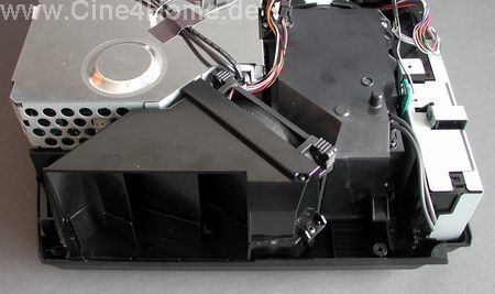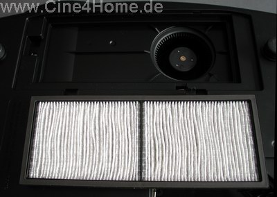 Die durch den Filter angesaugte Luft ist ausschließlich zur Kühlung des optischen Blocks gedacht. Die restliche Elektronik wird durch zahlreiche Lüfter im Gerät (siehe Bild oben) mit Kühlung versorgt.