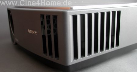 Verbaut wurden große Lüfter, die möglichst leise mit weng Drehzahl viel Luft bewegen können. Zentral abgeleitet wird anschließend die erwärmte Luft an der linken vorderen Ecke des Projektors.