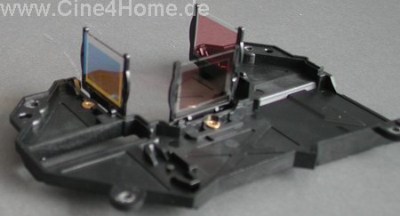 In Anbetracht des vollkommen neuen Äußeren ist es spannend, wie ähnlich der AW15 Topaz technisch zu seinem Vorgänger HS60 aufgebaut ist. Inwieweit wurde das Gerät neu konstruiert? Wir beginnen mit dem Herzen: Für die Bilderzeugung kommen drei Sony-eigene LCD-Panels mit einer jeweiligen Auflösung von 1280 x 720 Pixeln (kleine HD-Auflösung) zum Einsatz. Hier hat sich gegenüber dem HS60 nichts getan, im AW15 wird die selbe Generation verbaut. Ebenfalls geblieben sind die so genannten "High-Contrast Plates", die einen nativen Kontrast (ohne Blendentricks) von 2000:1 ermöglichen sollen. Inwieweit sich dieses Versprechen in der Bildqualität tatsächlich äußert, werden wir im umfangreichen Bildteil untersuchen.