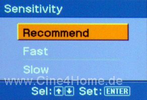 Zu bemängeln ist nach wie vor das Fehlen von direkten Quell-Anwahltasten. Um den Eingang zu wechseln, muss grundsätzlich mit der "Input"-Taste der Reihe nach durchgeschaltet werden. Immerhin werden nicht belegte Eingänge automatisch auf Wunsch üpersprungen. Die Reichweite des Infrarotsenders überzeugt, sie gewährleistet stets eine zuverlässige Signal-Übertragung zum Projektor, auch reflektiv über die Leinwand. Zudem sind alle Tasten auf Knopfdruck elektrisch beleuchtbar.