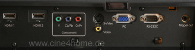 Bei den Anschlüssen gibt es hingegen keine Neuerungen: 2x HDMI, 1x Component (YPbPr), 1x S-Video, 1x Composite und 1x RGB H/V ermöglichen die Kommunikation mit der Außenwelt.