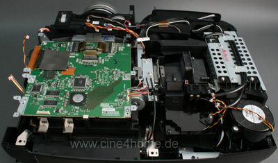 Genug über das Design, wenden wir uns nun den inneren, technischen Werten zu. Wie bereits erwähnt ist der TW5000 von Grund auf neu konstruiert, um die Vielzahl der technischen Neuerungen ans Tageslicht zu bringen, haben wir das Gerät nach guter alter Cine4Home Manier zerlegt.