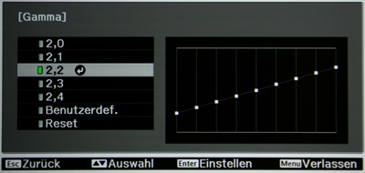 Ebenfalls Referenz stellt das Bedienkonzept des neuen Top-Modells aus dem Hause Epson dar: Die Menüstruktur ist unverändert durchdacht und kombiniert unzählige Bildparameter mit übersichtlicher Aufbereitung. Dadurch wird es für den Anwender möglich, gezielt die gewünschten Anpassungen vorzunehmen, ohne sich in einem Parameter-Chaos zu verirren. Die übersichtlich funktionelle Fernbedienung mit großer Reichweite unterstützt die Bedienung dabei effektiv. Negativ ist lediglich zu bemerken, dass manche neue Funktionen zu versteckt in diversen Untermenüs platziert wurden.