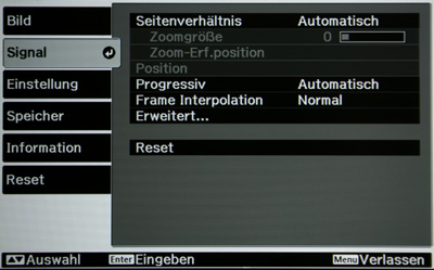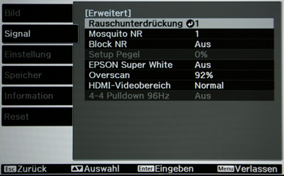 Die Epson Signalverarbeitung soll in der Lage sein, den 3-2 Rhythmus zu erkennen und die originale Bildfrequenz zu rekonstruieren. Wenn dies wie versprochen funktioniert, so kann man auch NTSC Material ohne 3-2 Ruckeln genießen. Dies ist ein lobenswertes Feature, das sich an viele Fans von Import-DVD richtet.
