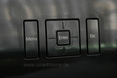 Die Fernbedienung ist in ihrer Tastenstruktur ein Musterbeispiel dafür, wie eine Projektoren-Fernbedienung zu sein hat: Klar gegliedert und übersichtlich befinden sich oben direkte Eingangswahltasten, darunter ergonomische und mit dem Daumen gut zu bedienende Navigationstasten und darunter gängige Direktfunktionen für Bildparameter. Auch der Infrarotgeber funktioniert zuverlässig und macht so die Gerätebedienung angenehm zuverlässig.