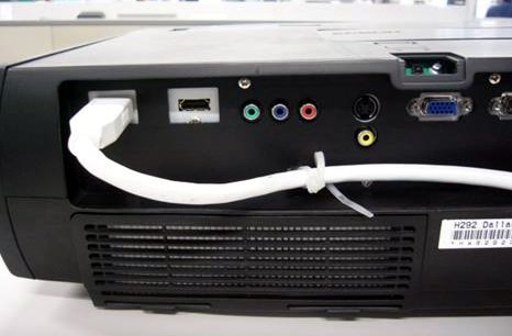 Gedanken hat man sich über eine praktischere und elegantere Installation im Heimkino gemacht. Erfahrene Heimkinonutzer kennen die Problematik der Zugentlastung: Gerade HDMI Kabel gelten nicht gerade als besonders stabil und schon alleine das Kabelgewicht kann mittelfristig für ungewollte Wackelkontakte sorgen. Eine kleine, einfache aber ebenso geniale Öse auf der Rückseite des TW5000 Light Power Edition schafft hier Abhilfe. Mit Hilfe eines Kabelbinders können alle Kabel arrangiert und ohne Zug auf die Stecker befestigt werden.