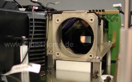 Lediglich die Rückseite des DMD-Chips mit dem großen Kühlkörper ist zu erkennen.