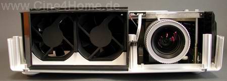 Unabdingbar für jeden Digital-Projektor ist eine ausreichende Kühlung der Lichtquelle, sie erfordert eine starke Luftzirkulation. Zu diesem Zweck befinden sich auf der linken und vorderen Seite des Projektors zahlreiche Luftschlitze.