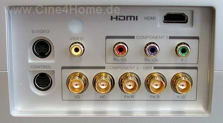 How Link hier) Die Anschlussseite des MT700 ist sehr vorbildlich und vergleichbar mit der mancher High-End Projektoren. Übersichtlich voneinander getrennt finden sich hier: 1x Composite (Cinch), 1x S-Video (Hosiden), 1x YUV (3xCinch), 1x HDMI und 1x Komponenten (5xBNC). Besonders letzterer Anschluss ist lobenswert, da hier wahlweise YUV oder RGB H/V über die zuverlässige BNC-Verkabelung eingespeist werden kann. Alle Eingänge des Projektors sind vergoldet und gewährleisten somit eine hohe Kontakt-Zuverlässigkeit.
