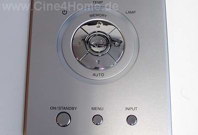 Als eine der wenigen Fernbedienungen am Markt ist sie klar in Rubriken eingeteilt: Eingangsauswahl, Bildformate, Bild-Presets, Navigation, Bildparameter und Sonderfunktionen. Alle diese Rubriken sind optisch voneinander getrennt und bieten für jede relevante Funktion eine eigene Taste. Das Steuerkreuz liegt in der Mitte und ist gut mit dem Daumen zu bedienen. Und für abgedunkelte Räume ist eine elektrische Beleuchtung zuschaltbar. Der Infrarotsender der Bedienung ist auch für große Distanzen kräftig genug und funktioniert reflektiv über die Leinwand. Besser kann man eine Projektoren-Fernbedienung kaum gestalten.