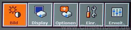 Das Bildmenü ist zweckmäßig und vielseitig, aber umfasst nicht alle gebotenen Bildparameter. Aus unverständlichen Gründen heraus wurde nämlich ein Teil der Bildfunktionen ausgelagert und in der Hauptrubrik „Erweitert“ versteckt. Gerade bei einer durchzuführenden Bildkalibrierung macht diese Zweiteilung die Arbeit unnötig umständlich, da ständig zwischen verschiedenen Hauptkategorien umher gesprungen werden muss.