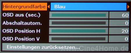 Hinter dem Namen „Optionen“ verstecken sich überwiegend kosmetische Funktionen zur Anpassung der On-Screen Menüs, wichtige Optionen sucht man hier vergeblich.