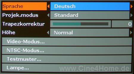 „Last but not Least“ bleibt das Einrichtungs-Menü. Hier sind alle Parameter zur Projektoren-Installation vorhanden.