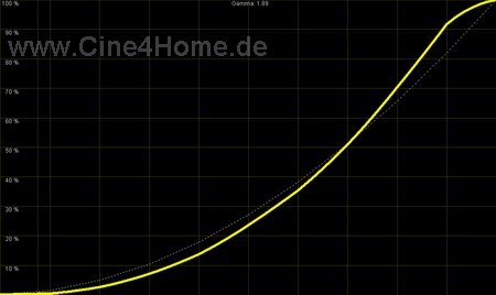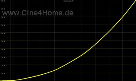 Wie die Farben muss auch die Helligeitsverteilung im Bild auf die Videonorm abgestimmt sein, das Verhältnis zwischen ausgegebener Lichtmenge und Eingangspegel muss stimmen. Für optimale Ergebnisse bei der DVD-Wiedergabe ist eine Gammakurve mit einem Anstieg von 2,2 bis 2,5 als optimal anzusehen. Der VPL-VW100 verfügt in seinem Bildmenü über verschiedene Gamma-Voreinstellungen, ein weiterer Einfluss durch den Anwender ist nur mit der speziellen Image-Director Software möglich.