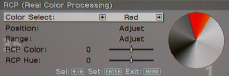 Insgesamt wäre in der knapp fünfstelligen Preisklasse eines Ruby eine etwas präzisere Abstimmung des Weißabgleichs zu erwarten gewesen, hier waren wir in unserem Test ein wenig enttäuscht. Dennoch bietet die Ungenauigkeit der Werksabstimmung für den Endkunden keinerlei Nachteile: Um den hohen Qualitätsansprüchen der Kunden in dieser Preisklasse gerecht zu werden, wird jeder einzelne Projektor vor der Auslieferung zum Kunden in Deutschland auf Wunsch von Hand voroptimiert. Somit kann man sich beim Kauf sicher sein, dass der Projektor auch sein volles Bildpotenzial daheim entfaltet, ohne dass man selbst Hand anlegen muss. Die gebotenen Parameter zur Farbkorrektur (oben) arbeiten bei dem Ruby wie von Sony gewohnt äußerst präzise und zuverlässig. Mit Messinstrumenten wie z.B. "Colorfacts" ist schon nach wenigen Minuten eine sehr gute Annäherung an die Norm erzielbar: