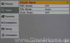 Wie der Name schon sagt befinden sich im Signalmenü alle Funktionen zur Apassung des eingespeisten Bildsignals.