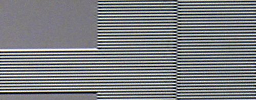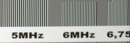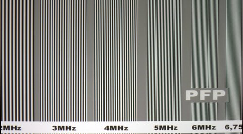 Analog / Digital Die horizontale Auflösung unseres PAL-Standards füllt mit 720 Bildpunkten gerade einmal rund 40% der nativen Auflösung des Projektors. Die fehlenden 60% muss der Scaler selbst errechnen. Bei einer hochwertigen Skalierung erfolgt dies durch intelligente Algorithmen, die die fehlenden Bildpunkte als Zwischenstufen interpolieren, ohne dass störende Linearitätsschwankungen oder Geometrieverfremdungen auftreten. Diese Arbeit erfüllt der Ruby-Scaler ausgezeichnet, er nutzt die hohe native Auflösung für eine nahezu perfekte Umskalierung des Bildes. Die hohe native Auflösung des Projektors kommt der Skalierung offensichtlich zu Gute. Selbst in dem schwierigen Auflösungsbereich um 6MHz zeigen sich keinerlei Verfremdungen oder Linearitätsschwankungen, dem PAL-Bild ist nicht anzusehen, dass es "umgerechnet" wurde.