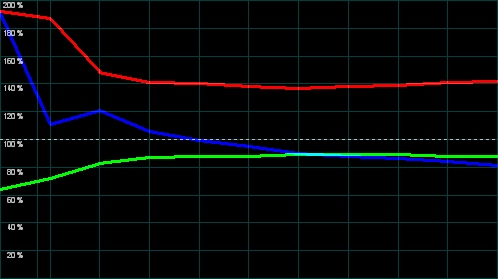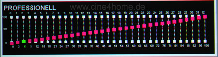 Wie schon in anderen Testkriterien festgestellt, bietet der Precision auch im Bereich der Gammakorrektur geradezu „bahnbrechende“ Einstellmöglichkeiten. So kann man mit verschiedenen Reglern die Helligkeitsverteilung managen. Die Spielereien kennen auch in diesem Bereich keine Grenzen, denn der Gammaequalizer bietet bis zu 33(!) Abstufungen.