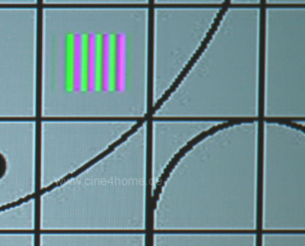 Selbst der schwierige Auflösunsgbereich um 6MHz zeigt kaum Interferenzen in der Skalierung auf. Ebenfalls positiv zu vermerken ist der geringe Pegelabfall, auch kleinste Details erscheinen nahezu gleich hell, wie größere. Dadurch wird die Schärfe des Bildes sichtbar gefördert.