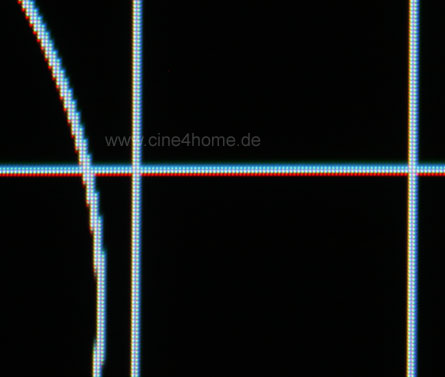 Die Konvergenz unseres Testgerätes ist allerdings leider nicht ganz perfekt. Bei näherem Betrachten kann man einen leichten roten Farbsaum erkennen, der um einen halben Pixel verschoben ist. Die ist aber ab einer gewissen Entfernung nicht mehr zu sehen, so dass dieses Manko verschmerzbar ist