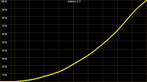 Unsere Gammamessungen haben ergeben, dass der Wert ab Werk mit 2,35 etwas über der Video Norm liegt. Nichts desto trotzt verläuft die Kurve recht gleichmäßig.