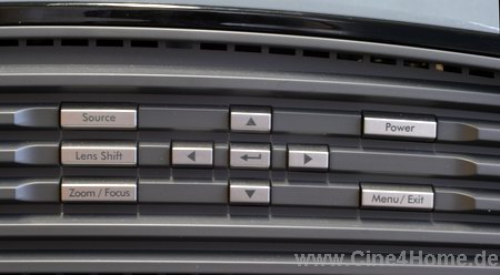 Wenn man die Fernbedienung gerade einmal nicht zur Hand hat, kann man das Menü auch über die Knöpfe am Projektor bedienen. Zusätzlich lassen sich mit diesen auch Lens-Shift, Zoom und Fokus steuern.