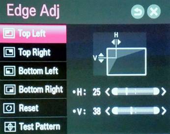 Dazu ein Beispiel: Die für Heimkinos gängige Bildbreite von 2,4m wird aus einem minimalen Projektionsabstand von rund 3,3m erreicht. Dies ist ein sehr gut auf hiesige Räumlichkeiten abgestimmtes Projektionsverhältnis. Durch den Zoom kann der Projektionsabstand auf ca. 3,7m verlängert werden, der gewonnene Spielraum beträgt demnach nur rund 40cm. Die mögliche Bildgröße wird daher in erster Linie vom möglichen Projektionsabstand bestimmt. Es empfiehlt sich, vor dem Leinwandkauf den möglichen Abstand genau zu eruieren, um sich keine Größenprobleme einzuhandeln. Auf den Luxus ein optischen Lensshiftes muss man ebenfalls verzichten, sowohl horizontal, als auch vertikal. Das bedeutet aber nicht, dass eine Aufstellung außerhalb der optischen Achsen unmöglich wäre, im Gegenteil: Der LG PF1500 verfügt über eine automatische vertikale Trapezkorrektur, so dass bei einer schrägen Aufstellung „bergauf oder bergab“ die Bildgeometrie stets korrekt abgebildet wird. Auch eine seitliche Aufstellung außerhalb der Bildmitte ist problemlos: Der PF1500 erlaubt dem User durch eine individuelle Eckenanpassung, eine horizontale Trapezverzerrung zentimetergenau auf die Leinwand anzupassen.