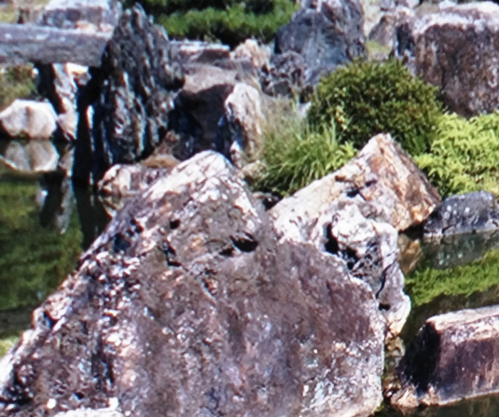 Nahezu umgekehrt sieht es bei der steinernen Blume aus: Hier bietet der JVC X500 einen sehr guten Detailkontrast und erreicht eine natürlich wirkende hohe Schärfe.