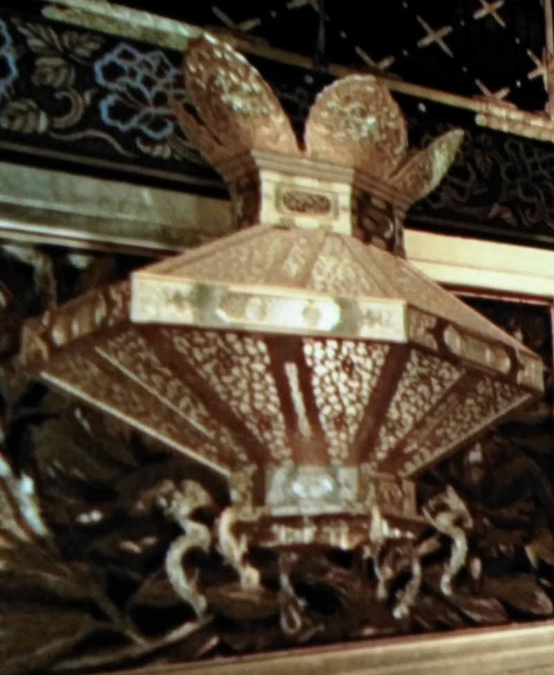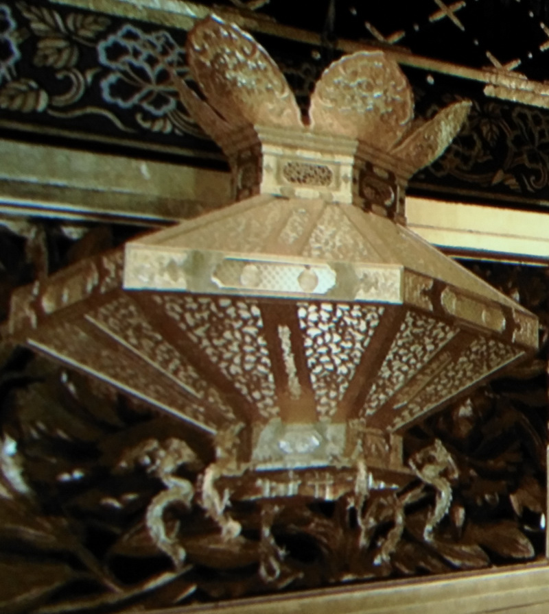 Unsere nächste Szene, diesmal unter Kunstlichtbedingungen, hier betrachten wir die kelchartigen Ornamente links und rechts oben: