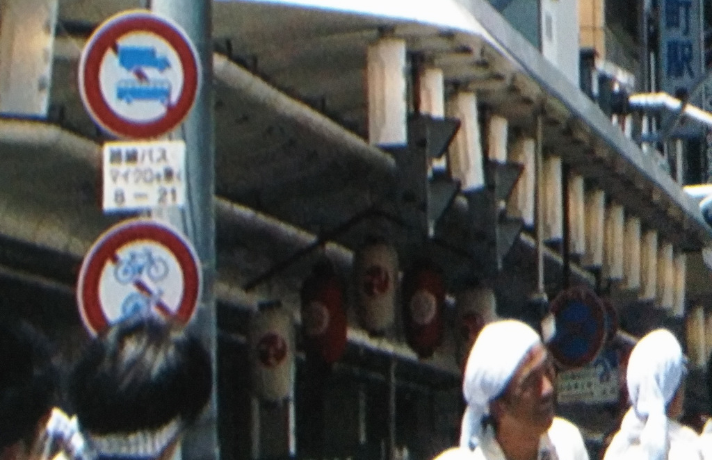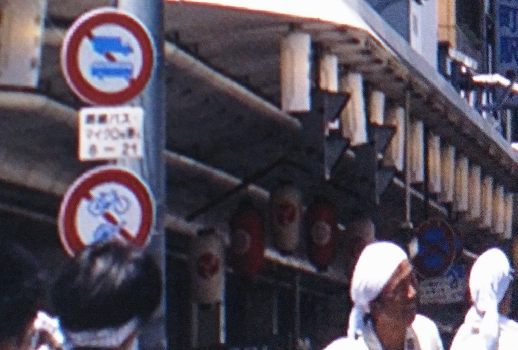 Auch die Konvergenz des Sony VW300 gerät an ihre Grenzen, es zeigen sich leichte gelbe Farbsäume an den weißen Elementen. Doch Treppenstufen und Aliasing-Artefakte wie beim Epson sind nicht zu sehen, auch bei engen Rundungen wie bei den Verkehrsschildern wirkt die Darstellung fein aufgelöst und analog.