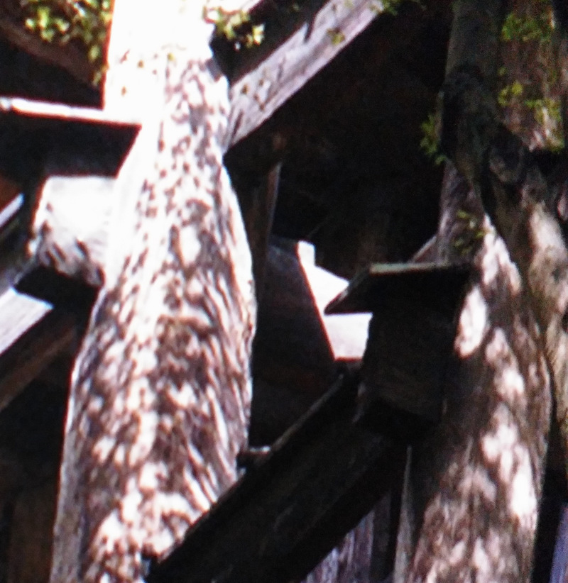 Der nativen 4K Auflösung des Sony gelingt es, die feine Maserung der Holzstämme scharf, detailliert und dennoch natürlich herauszuarbeiten, Artefakte sucht man vergebens.