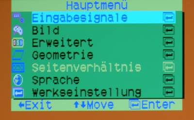 Dieser Test zeigt die Eigenschaften des Projektors in seiner Werks-Ausführung.