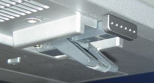 Mit Hilfe des Hebels lässt sich die Optik analog in alle Richtungen bewegen. Die mechanische Technik, die sich dahinter verbirgt, wirkt hochwertig und wesentlich präziser verarbeitet als z.B. bei einem Sanyo PLV Z2.