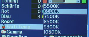 Leider zeigt sich der Sharp hier, wie viele Einsteigermodelle, wenig zuverlässig. Die abrufbare "6500k" Einstellung lässt zunächst auf eine konstante Farbtemperatur von 6500k schließen. Gemessen ergibt sich leider ein etwas anderes Bild: